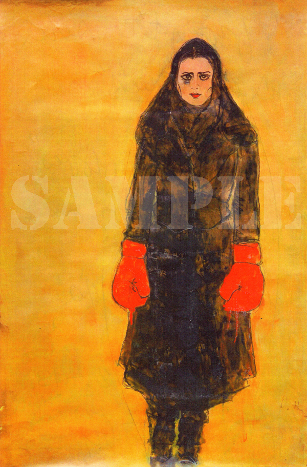 RED GLOVES (from the MEAN STREETS Series) pencil / watercolor on paper by Dino Danelli