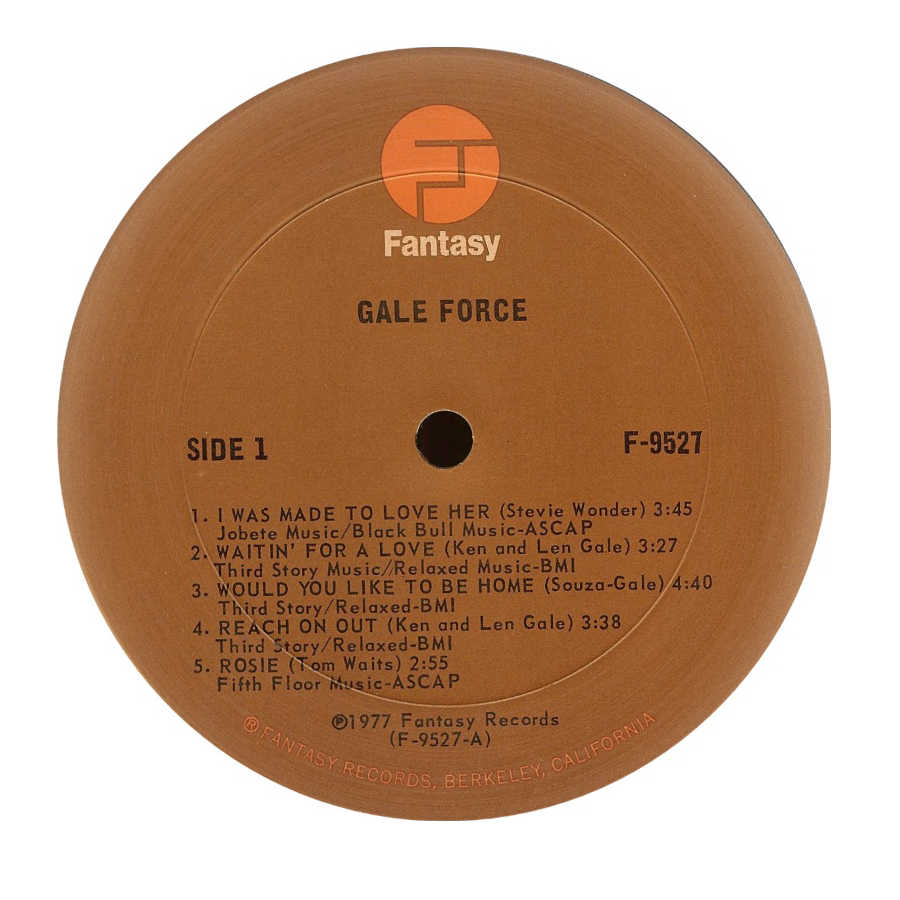 Gale Force (LP, Album) Bellaphon BBS 2530 Germany 1977 Gale Force (LP, Album) Fantasy FAC-9527 South Africa 1977 Gale Force (LP, Album) Fantasy, Festival Records Pty. Ltd. F-9527, L 36260 Australia & New Zealand 1977